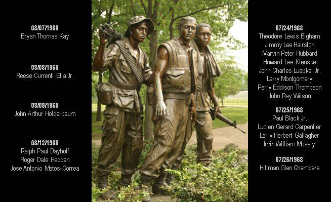 August 1968, resulting in nineteen  This account is dedicated to the memory of our fallen buddies and comrades who were killed in action (KIA) during these firefights: