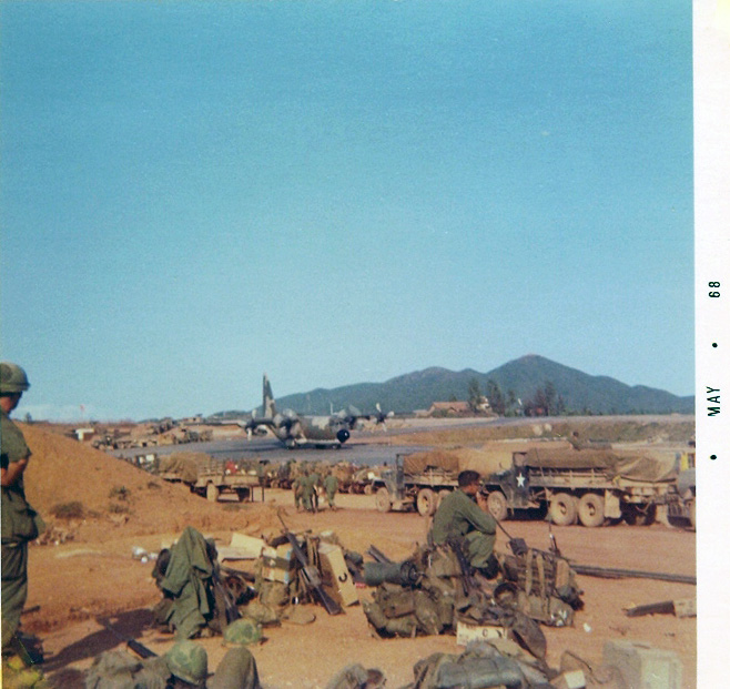 Units of the 23rd Division relieved us and Bravo Company moved to the airstrip at LZ English and waited several hours for the C-130 Hercules aircraft that would take us to Quang Tri. The whole company was loaded into one C-130 and we took off on a sixty-minute flight to Quang Tri. As we approached the Quang Tri area, our “nervous” Air Force pilot stated that he had problems with his instruments and could not land at Quang Tri. So we returned to LZ English and waited around for a replacement aircraft. Off again and this time we landed at Quang Tri and were met on the airstrip by our Battalion Commander, LTC Stannard. After a briefing on the enemy situation and our new mission, we loaded helicopters and combat assaulted in an area northeast of Quang Tri, close to the border between North and South Vietnam. Quang Tri City is the provincial capital for the northernmost province of South Vietnam and is located about 10 kilometers inland from the Gulf of Tonkin and 25 kilometers south of the demilitarized zone.