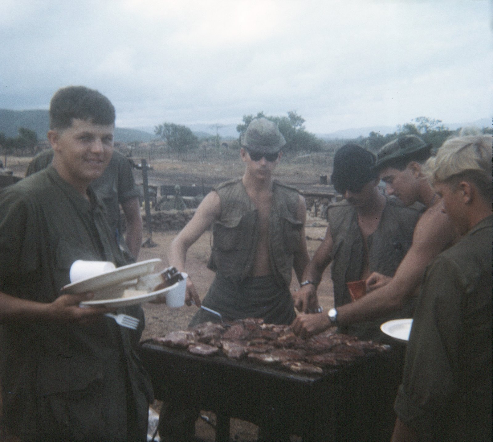 involved the fine art of “scrounging”. Scrounging probably dates back to the early days of the Army and it has always been a well-known and accepted phenomenon in wartime. In short, when your unit desperately needed something that was unauthorized or unavailable, you either did without or you tried to scrounge it. Needless to say, a super deluxe barbecue for 160 troopers was not available through “normal” supply channels and this is how we procured the necessary provisions. The first step was to select a suitable project manager and our Sergeant X had all the special qualifications required for these scrounging missions where discretion and an ability to make contact with the right sources were absolutely essential. For a successful scrounging expedition, you usually had to have something worthwhile to barter with and we had a huge supply of a very scarce product that every soldier in Vietnam longed-for - - a Czech Mauser rifle that could be taken back to the States as a trophy weapon because it was bolt-action and not automatic. Bravo Company always had a small supply of captured Mausers on hand, but this supply became abundant when we captured approximately 1,000 Mauser rifles in excellent condition. As a matter of fact, the metal parts of these captured weapons were still covered in preserving grease and each weapon was equipped with an attached swivel bayonet. ONE