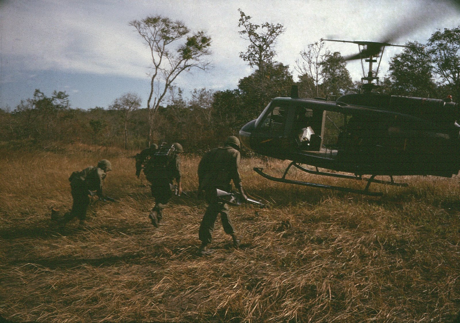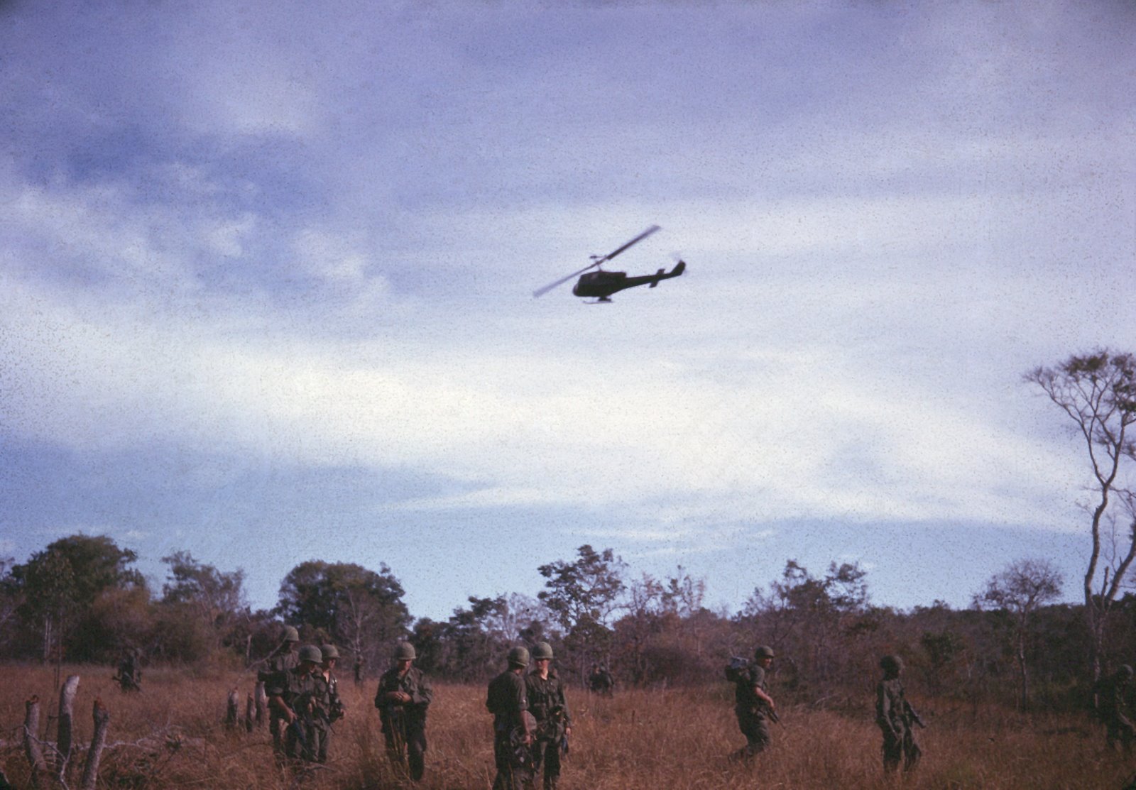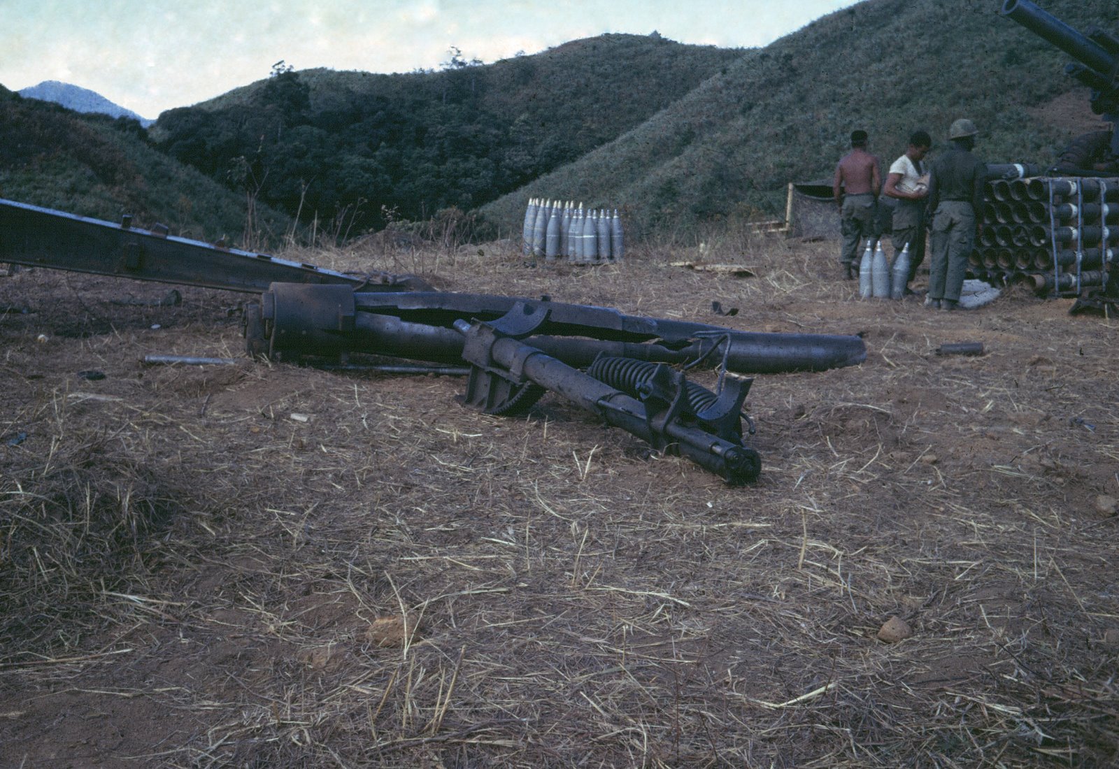 Alpha Company came under intense enemy fire from the moment they landed in what has been described as “in the middle of a hornet’s nest”, and this lasted for four hours. Enemy antiaircraft fire quickly destroyed two Huey helicopters and damaged five more. In addition to helicopter crew losses, Alpha Company had six men killed and twenty wounded. Enemy forces were subjected to a heavy pounding with a total of 42 tactical air sorties delivering a large number of bombs, napalm and aerial rockets. In addition, C Battery fired over 900 rounds of 105mm shells, and gun ships expended 576 aerial rockets. Two of our helicopters were shot down and the command and control helicopter with our Battalion Commander and Operations Officer, which was circling overhead to help coordinate artillery and air fire support, was hit by enemy fire and had to withdraw from the battle area. For a complete report on the LZ Pat operation, see the Alpha Company web page http://mysite.verizon.net/k8mia The battalion conducted combat operations in the Song Re Valley until 18 August, and on this date we were air lifted to LZ MOBERLY, a Special Forces camp in the valley south of the combat area where we spent the night. The camp had a small airstrip and during the morning of 19 August, our battalion was air lifted by Caribou to LZ English.