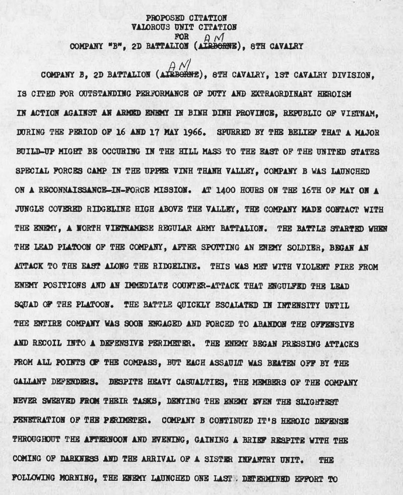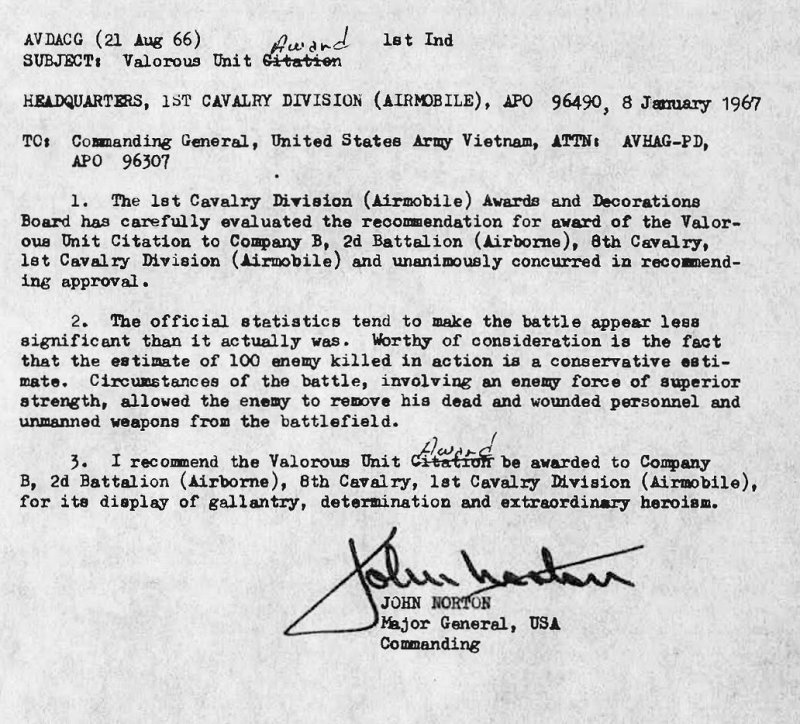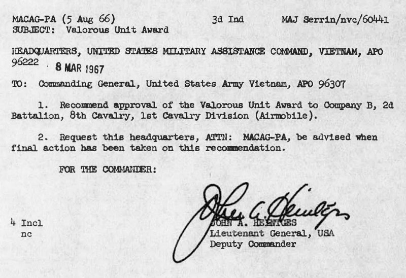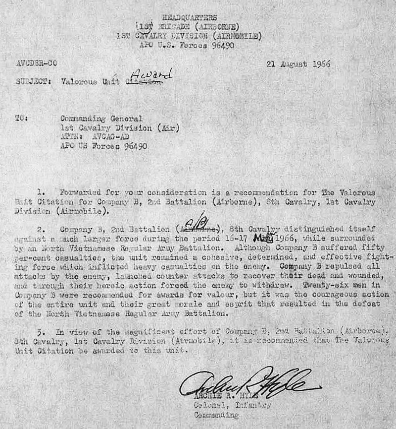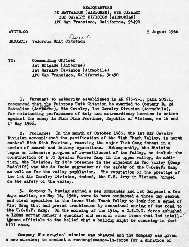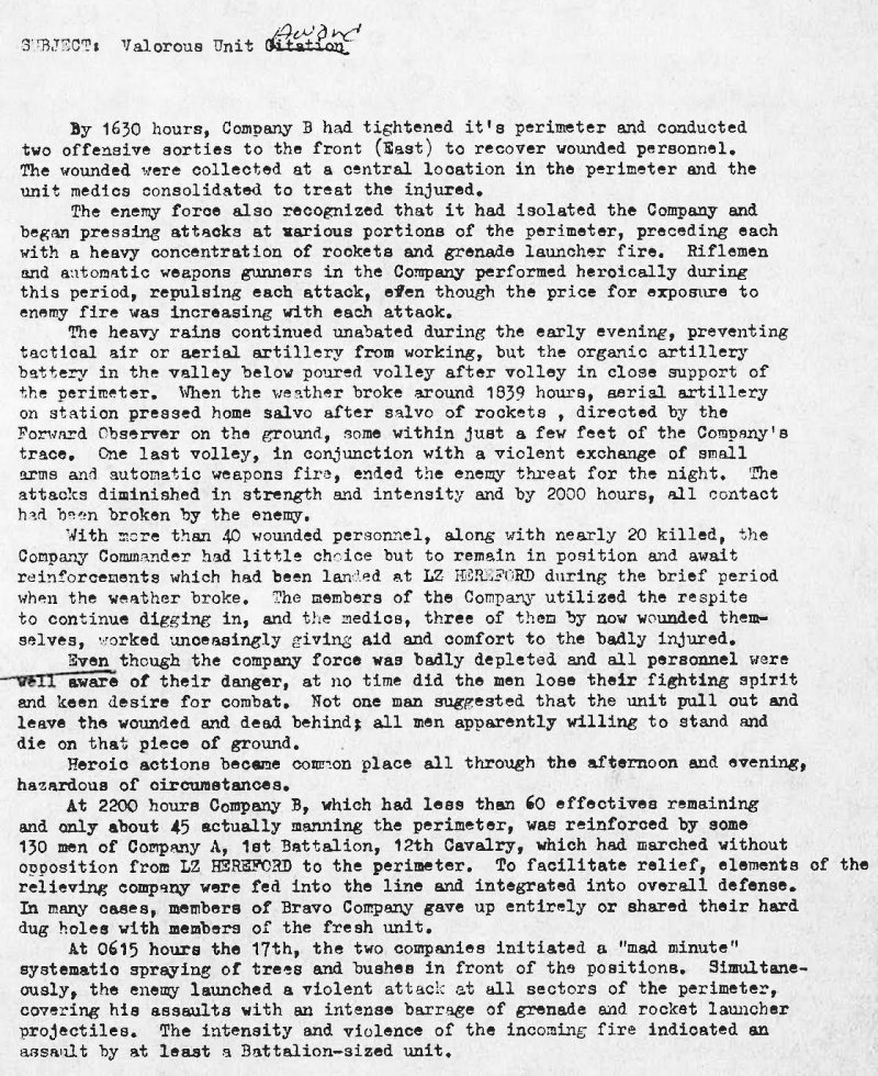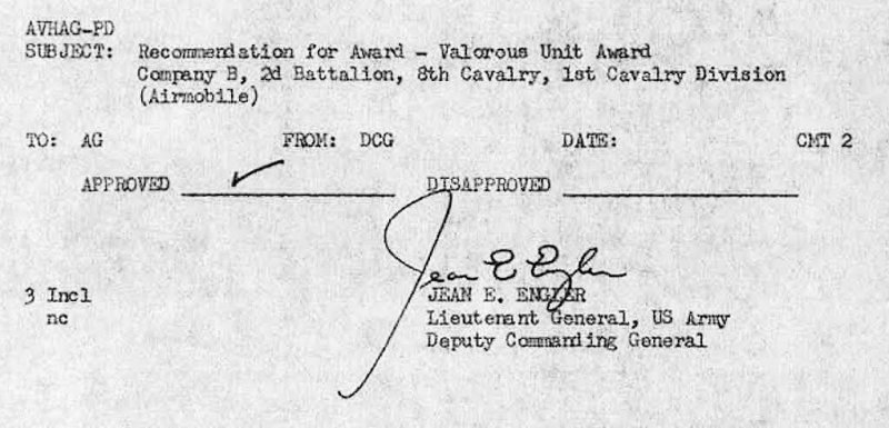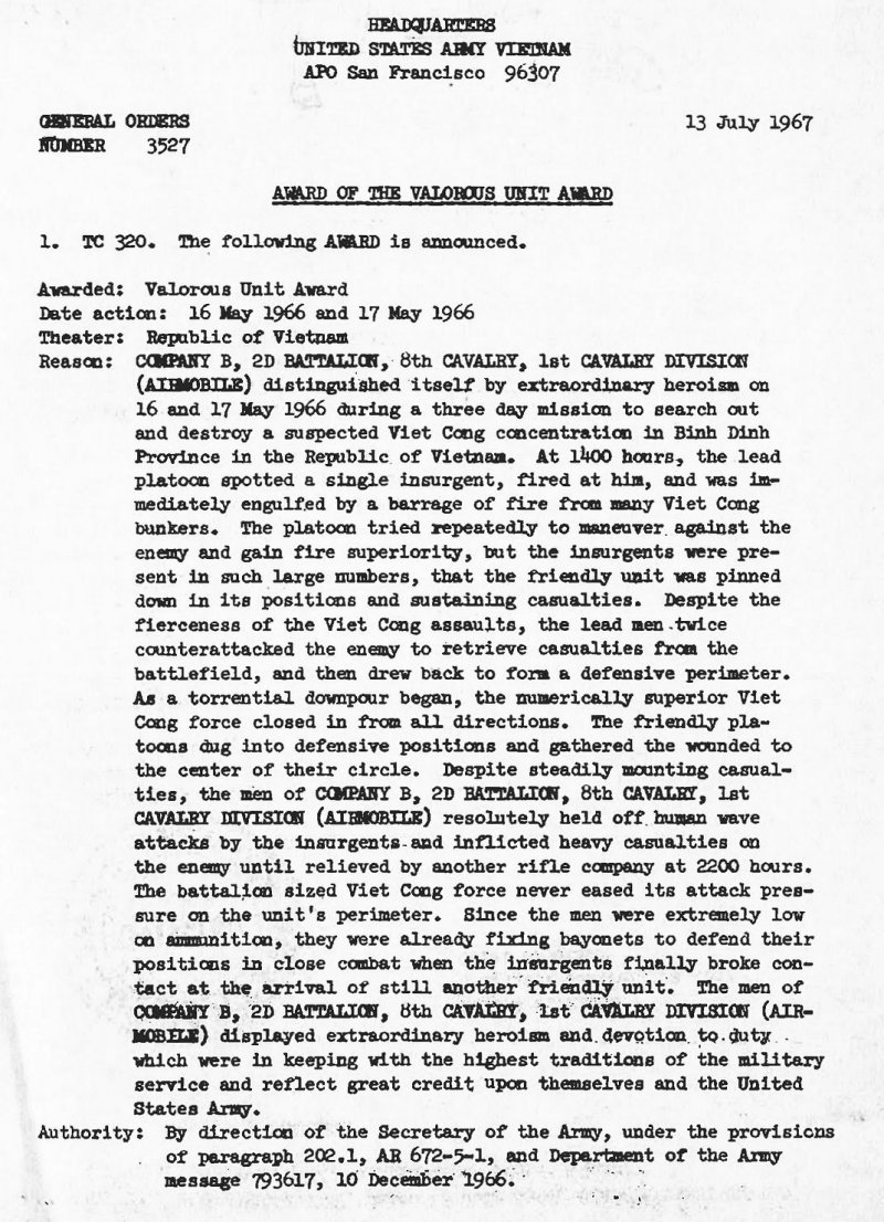 of this Valorous Unit Award to Bravo Company by the 1st Cavalry Division