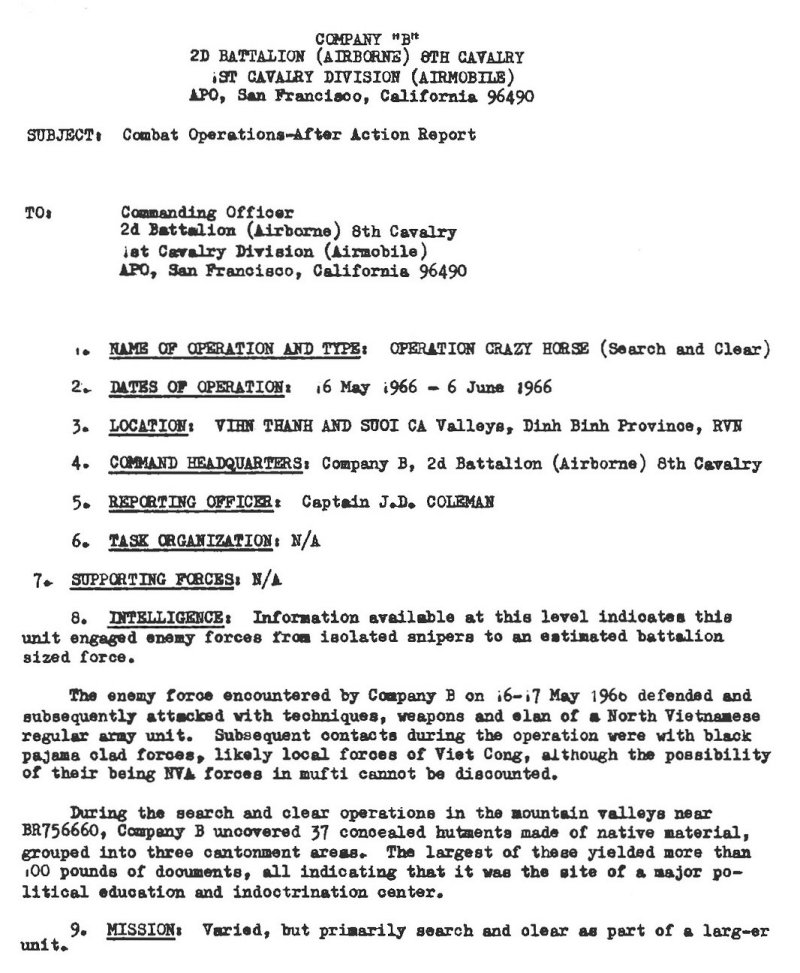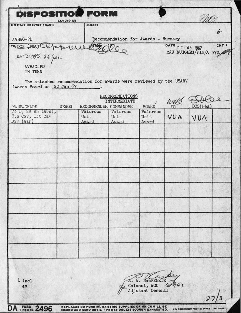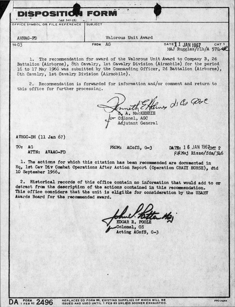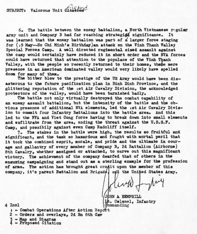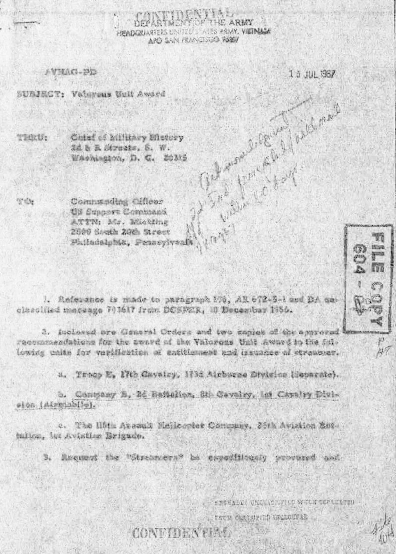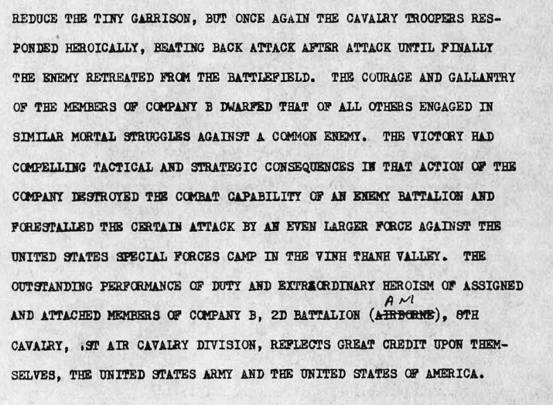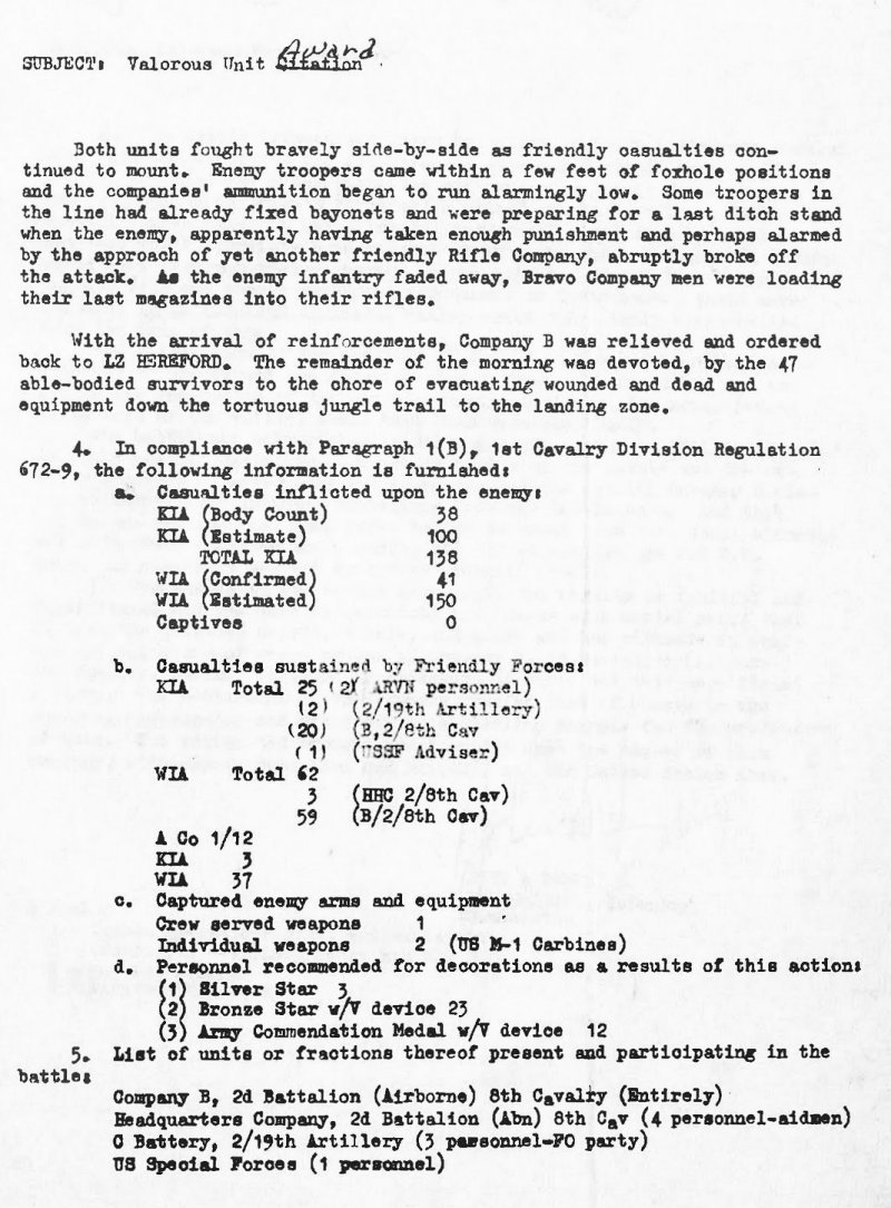 of this Valorous Unit Award to Bravo Company by the 1st Cavalry Division
