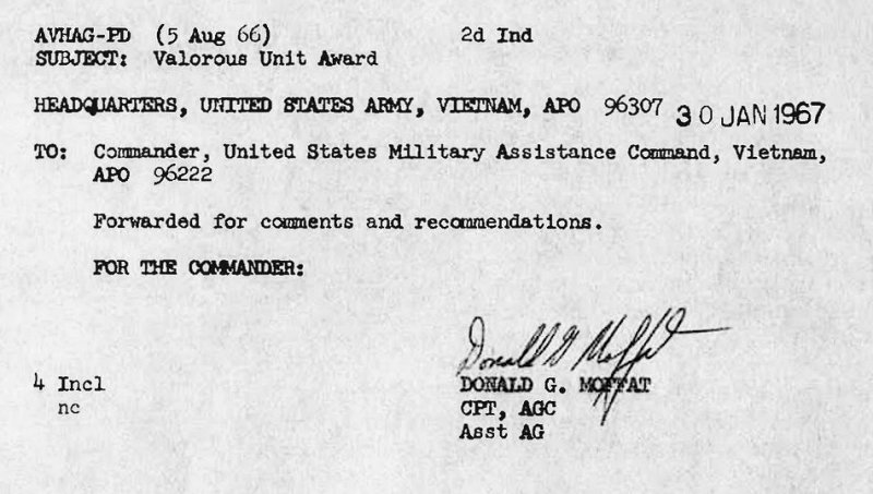 in February 1968, at Quang Tri, Vietnam. A Valorous Unit Award is the